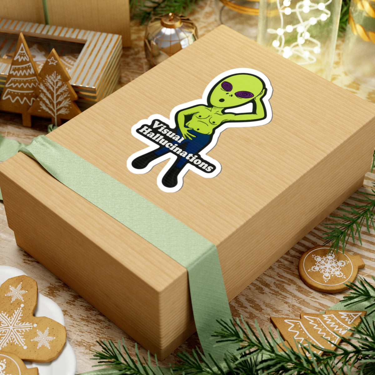 Alien Graphic Sticker — "Visual Hallucinations" Kiss-Cut Vinyl Sticker