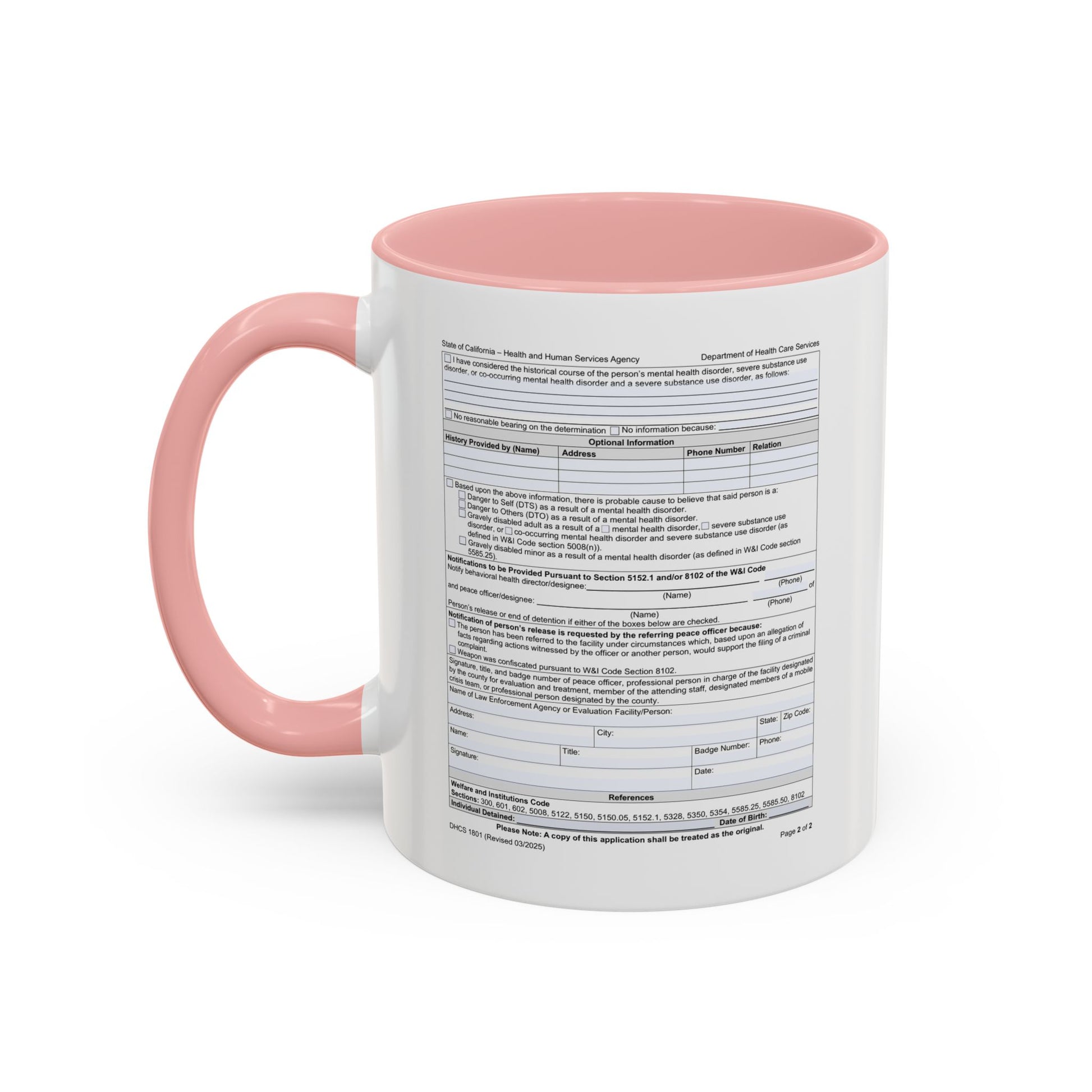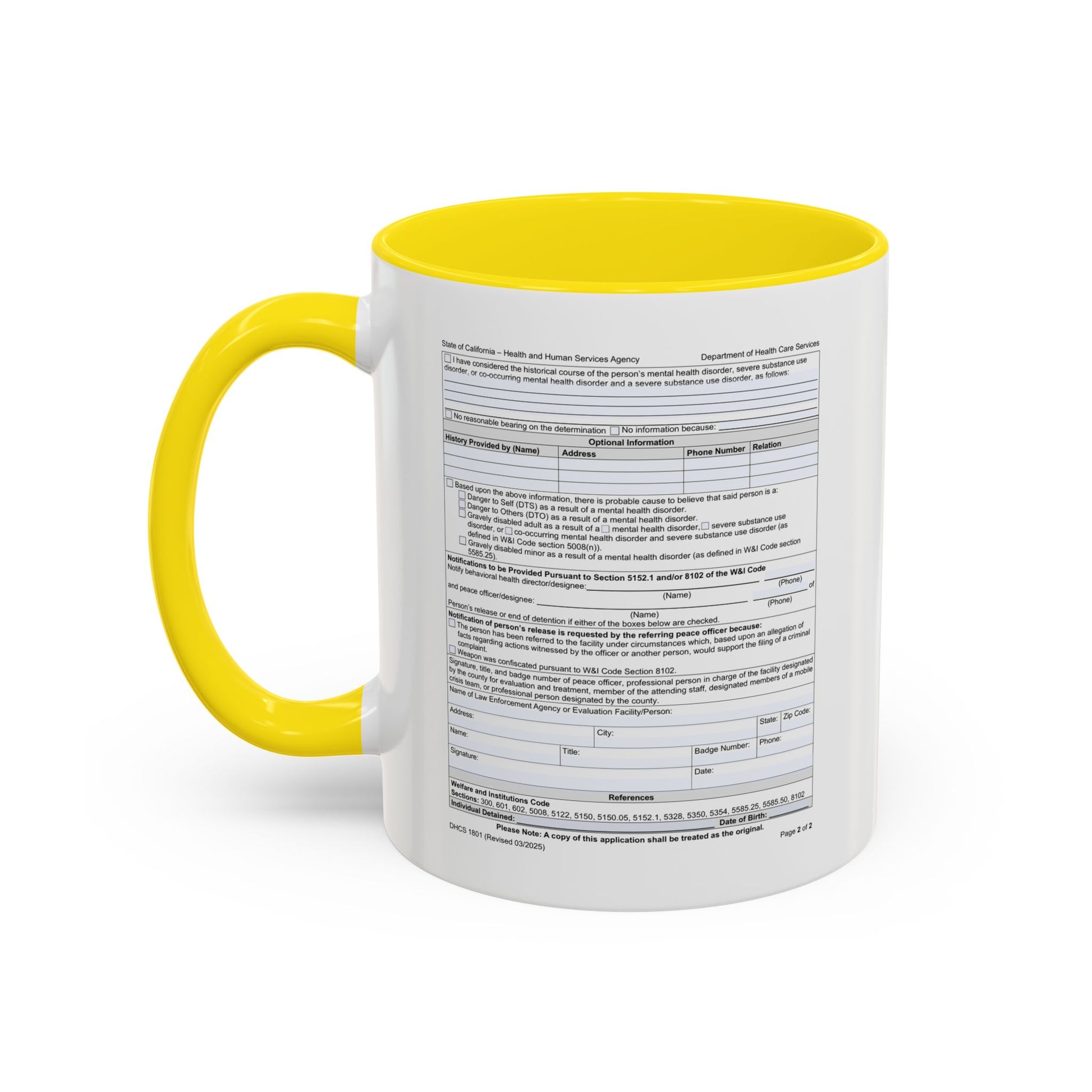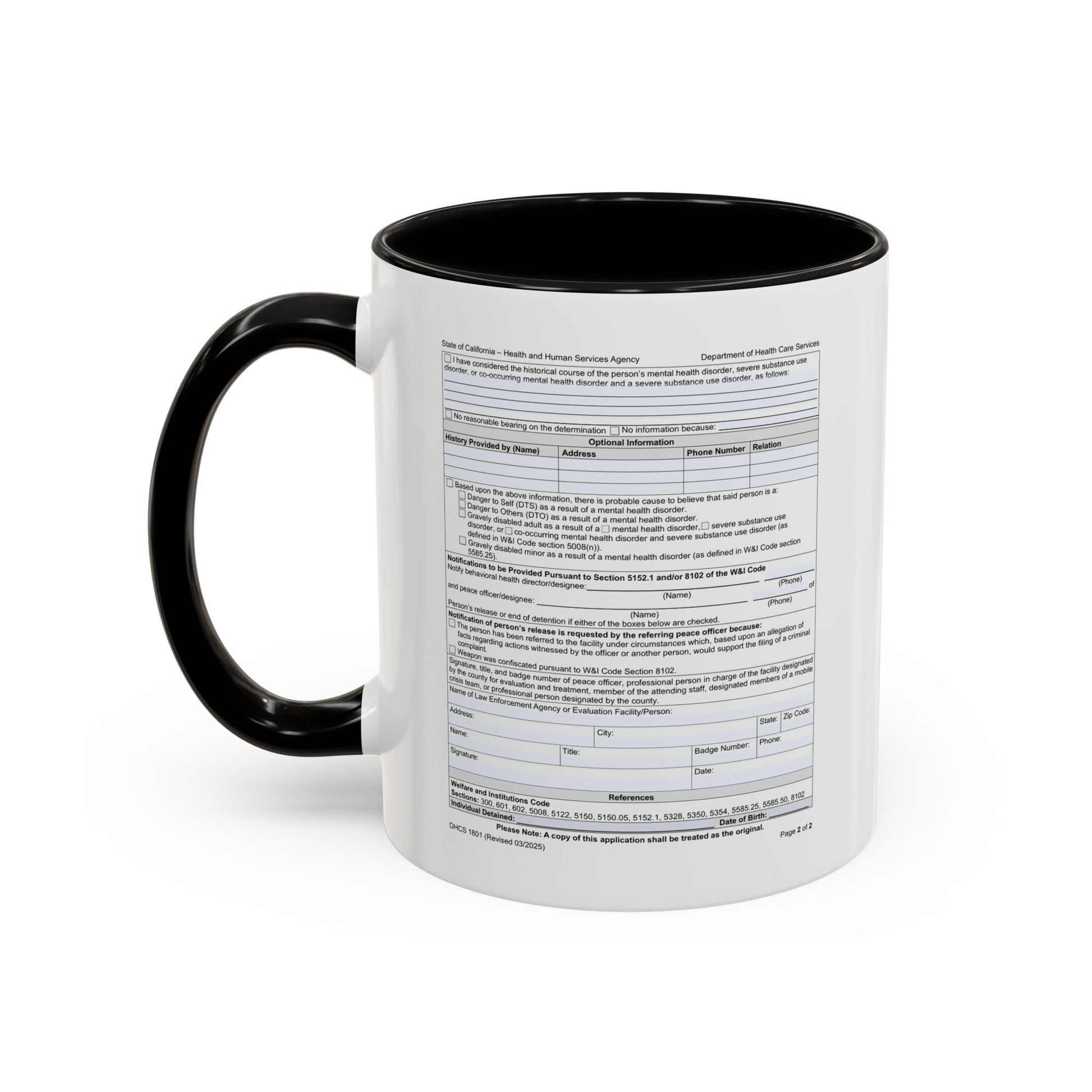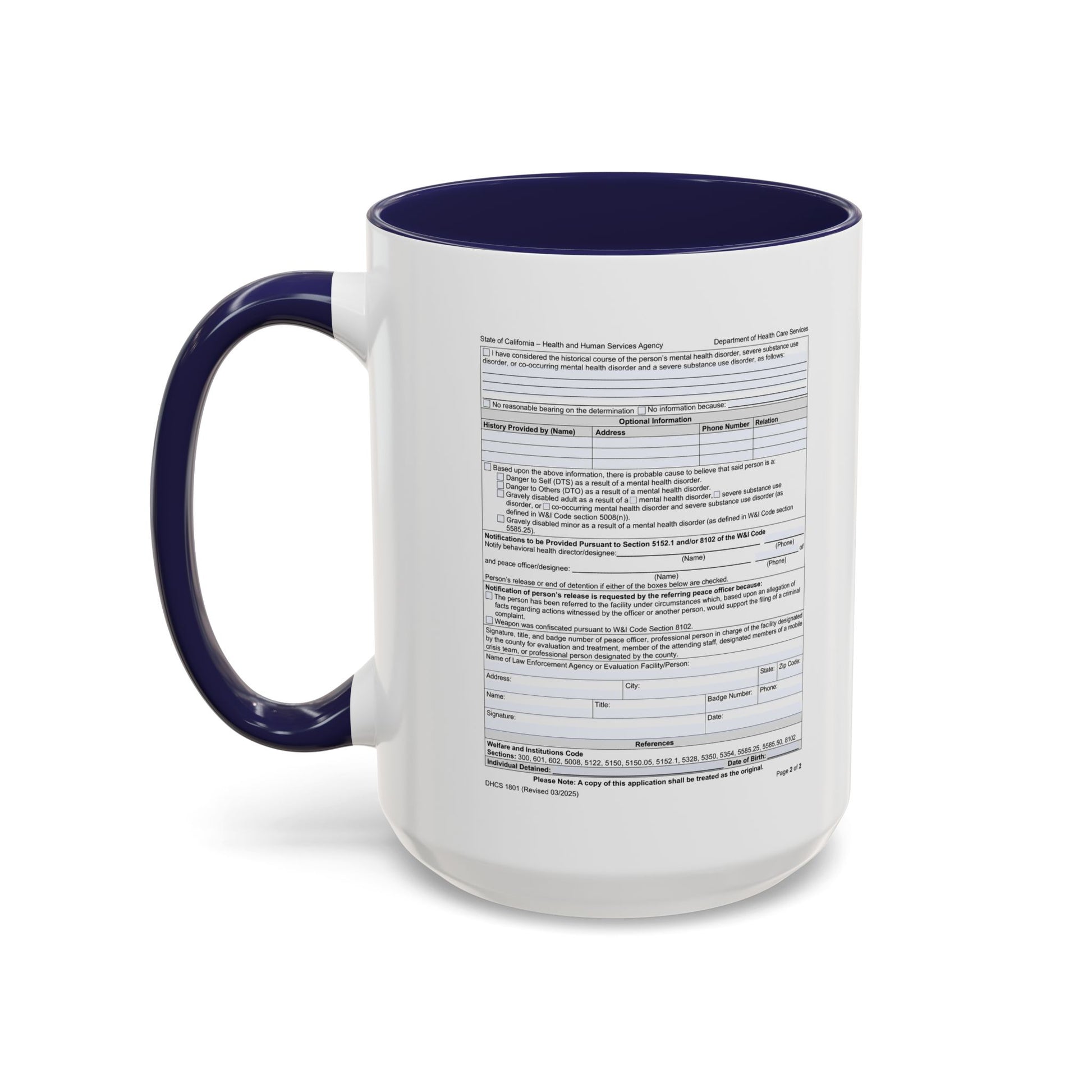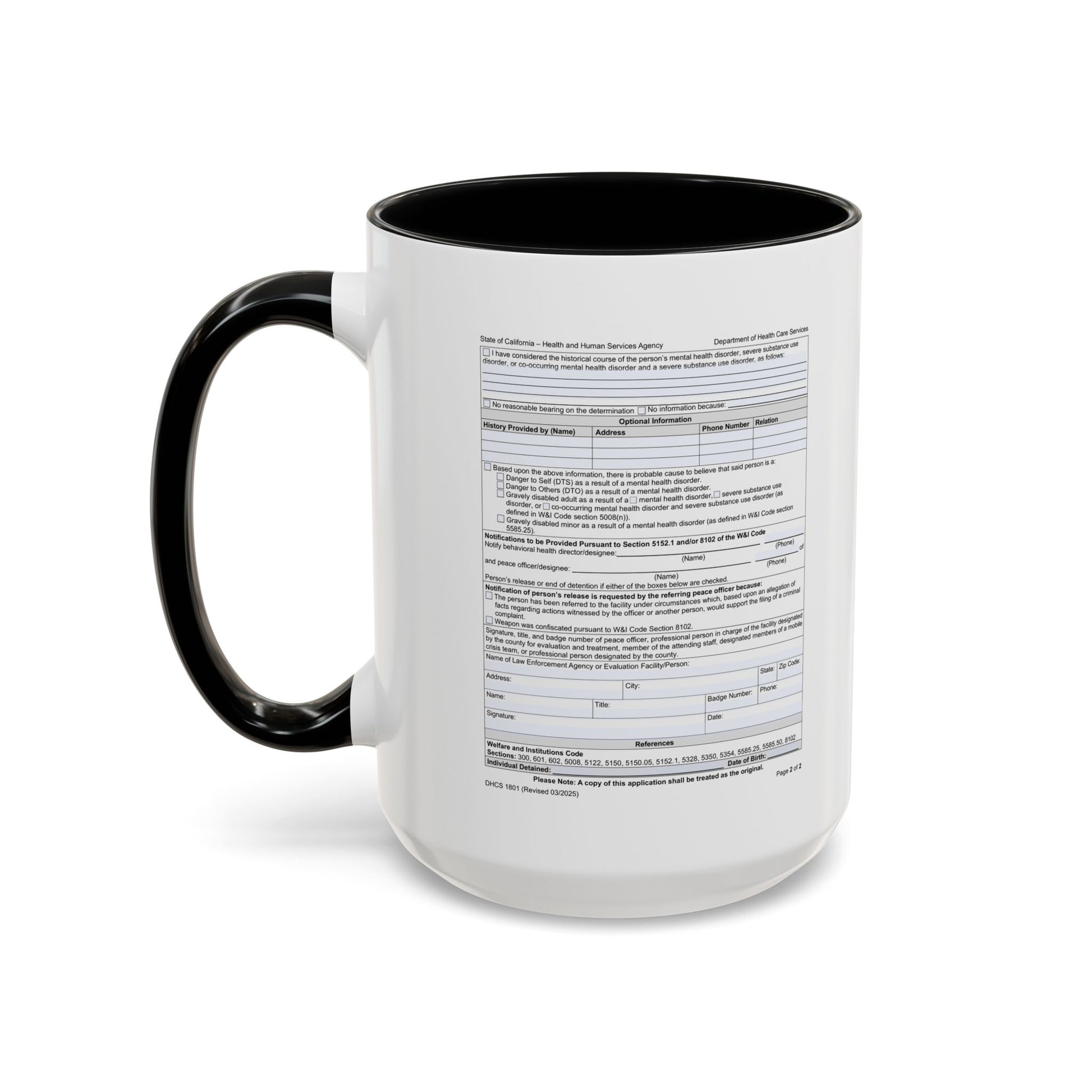 Coffee Mug with California WIC 5150 criteria — Novelty Accent Mug (11/15 oz)